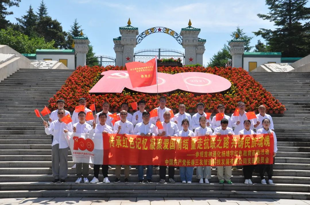 为庆祝中国共产党建党100周年,弘扬东北抗联精神,6月12日,长春三友智造科技发展有限公司党支部组织公司全体员工到通化市东北抗联红色教育基地参观学习,开展“传承红色记忆,凝聚爱国情结,重走抗联之路,共铸民族魂魄”暨庆祝建党100周年主题教育活动,让参与的全体员工共同重温抗联历史,接受红色熏陶,提升党性修养。