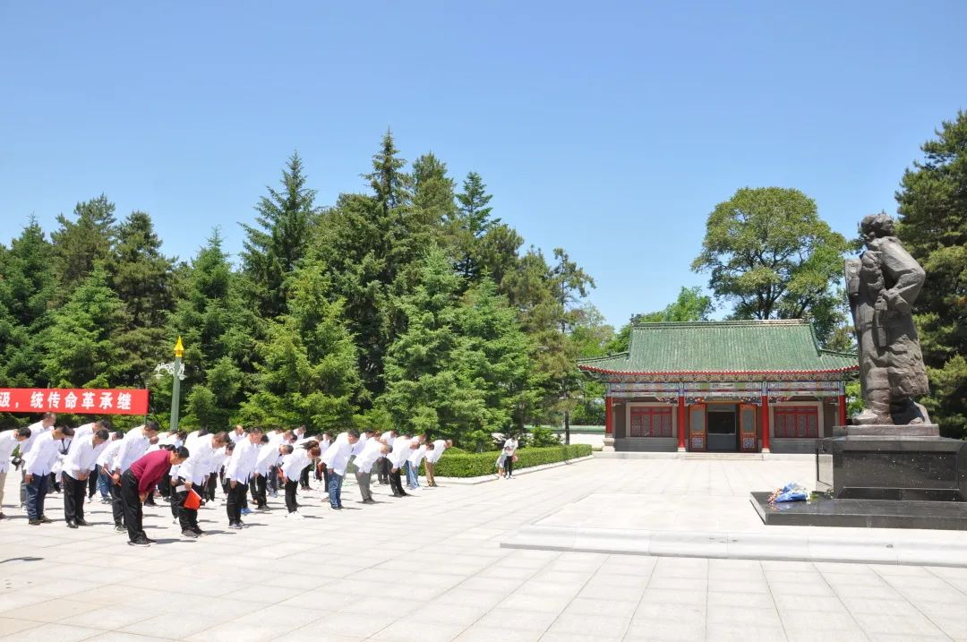 13日上午,全体人员乘车来到杨靖宇烈士陵园缅怀先烈,在园区宣誓广场,全体人员再一次重温入党誓词和举行了重走抗联路仪式,并在陵园内杨靖宇将军雕像前进行了献花仪式。随后,大家在吴老师的带领和动情的讲解下,怀着对革命烈士的无限敬意参观了纪念馆。大家时而凝神倾听,时而驻足观看,透过一件件文物,一张张图片,一个个雕塑,追寻历史痕迹,追溯抗联战士的“红色之路”,回顾当年共产党人在抗日战争中的壮烈情景。在这里,我们听到一段又一段可歌可泣的英雄故事,感受到一份又一份视死如归的英雄情结。